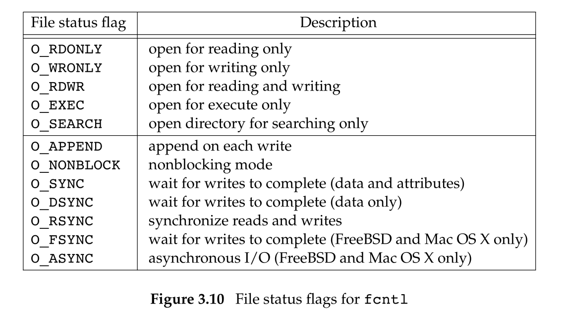 - 获取/设置文件状态标志 (cmd = F_GETFL 或 F_SETFL)。