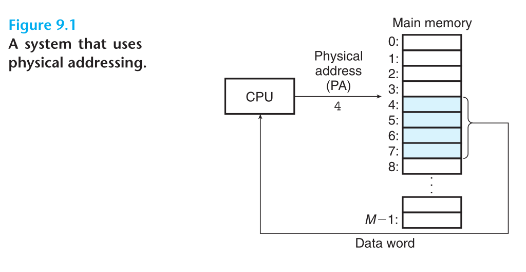 计算机系统主存被组织为一个由 M 个连续字节大小单元组成的数组。每个字节都有一个唯一的物理地址 PA,第一个字节的地址为 0,下一个为 1,以此类推。CPU 访问内存最自然的方式就是使用物理地址,也叫物理寻址。