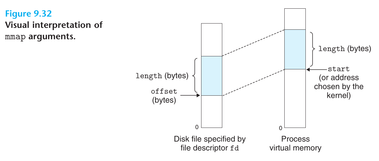 void *mmap(void *start, size_t length, int prot, int flags, int fd, off_t offset);