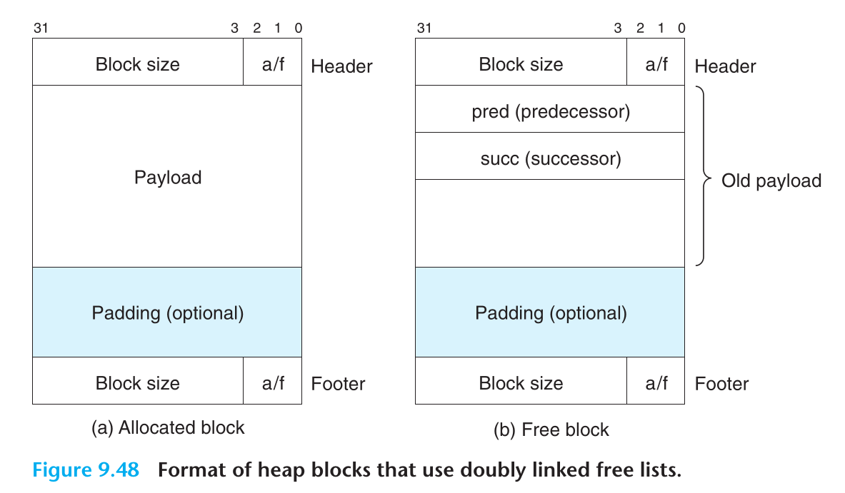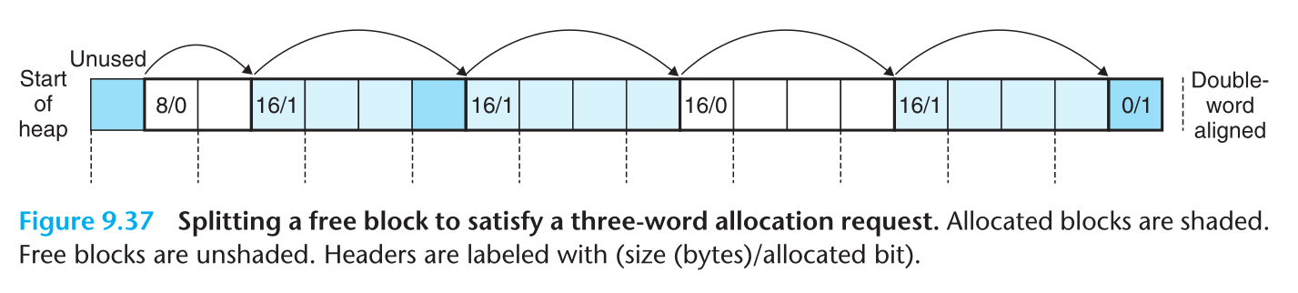 - 对齐块:分配器必须对齐块以使其能够容纳任何类型的数据对象。